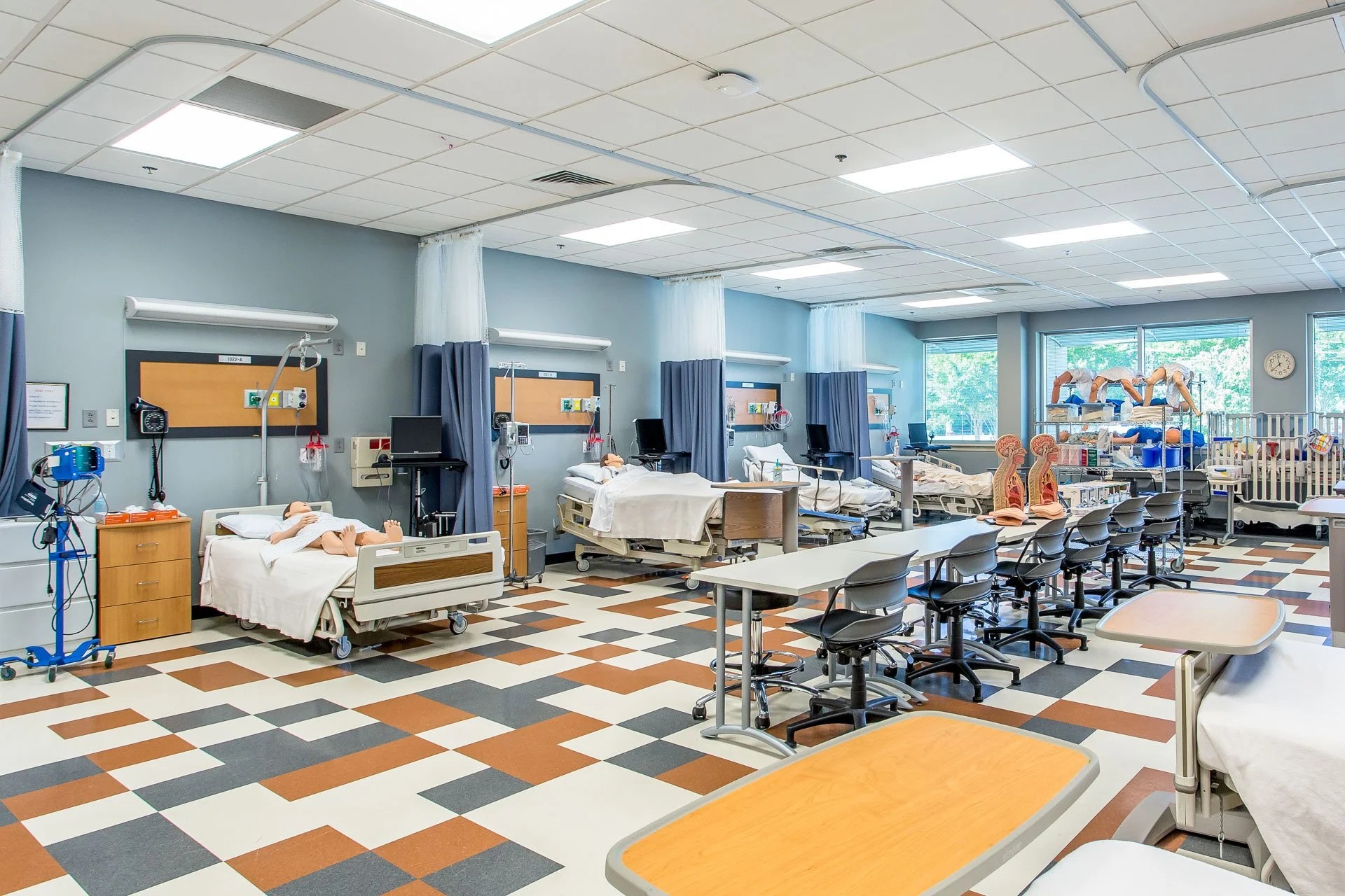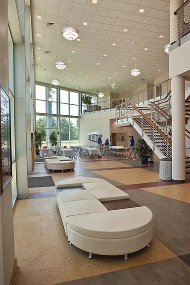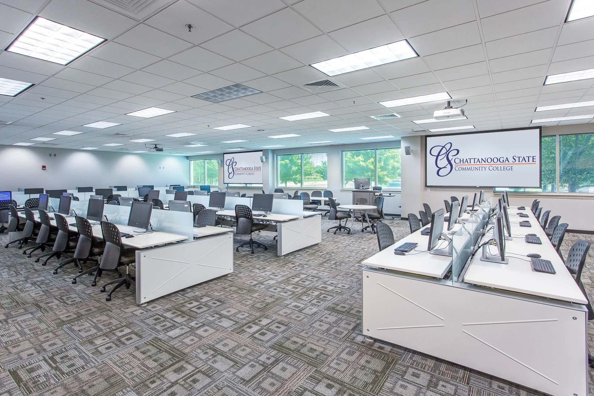 This 2-story facility supports the medical programs of Chattanooga State Community College. The new construction provided common areas and corridors, administrative offices, classrooms, lecture halls and labs to replicate actual hospital rooms and dental clinics which the design team provided finish and furniture selections for.