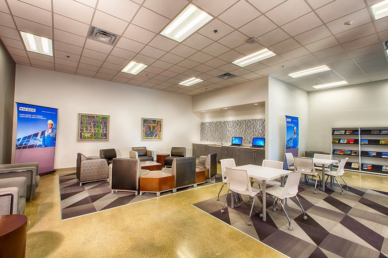 This project was a partnership between Chattanooga State’s Engineering Technology Division and Wacker Polysilicon North America (WPNA). The building renovation included labs and classrooms for chemical operations, electrical instrumentation (E&I) and mechanical systems maintenance. The finishes and furniture specified provide a modern and functional atmosphere for students and staff.