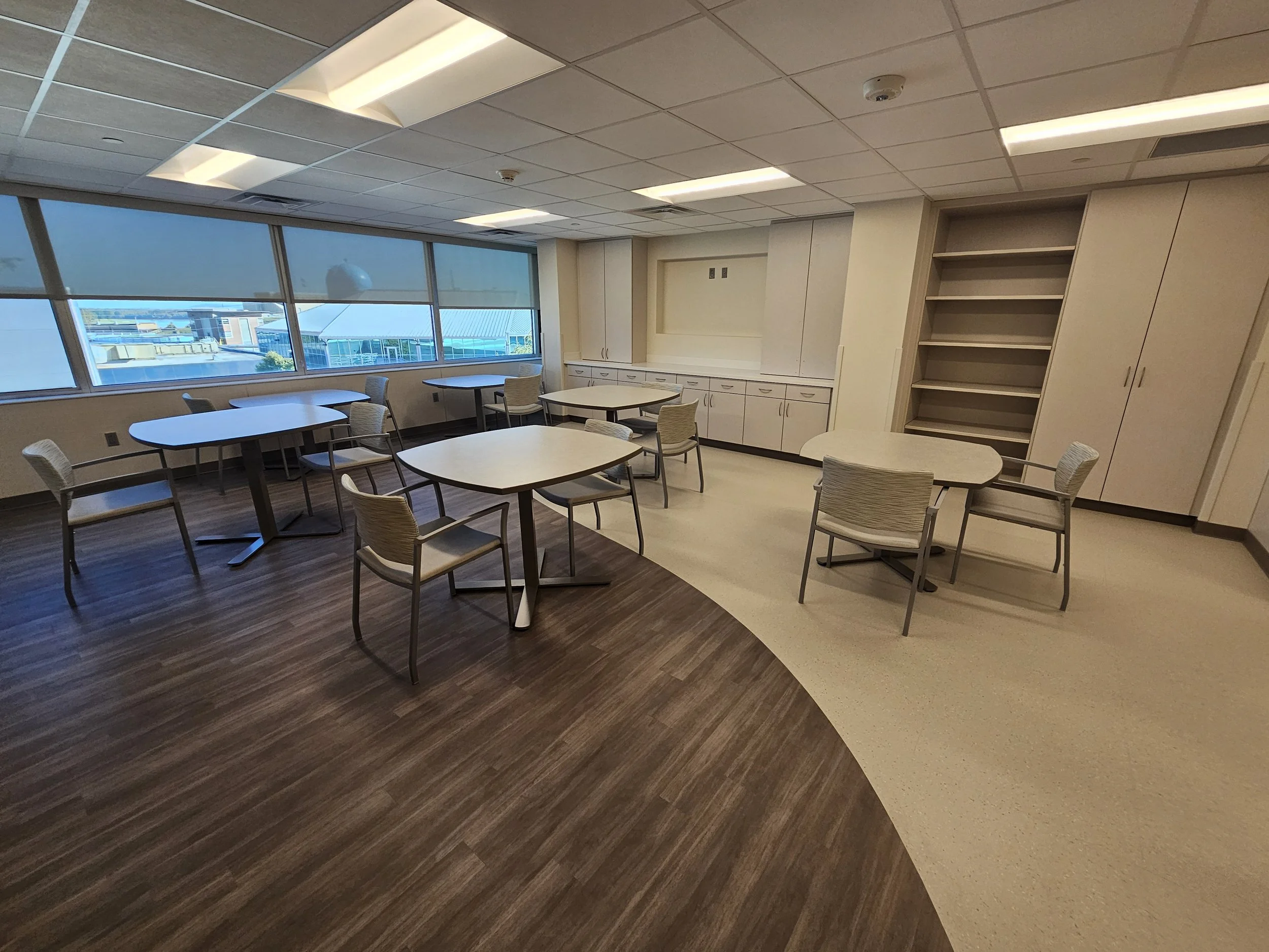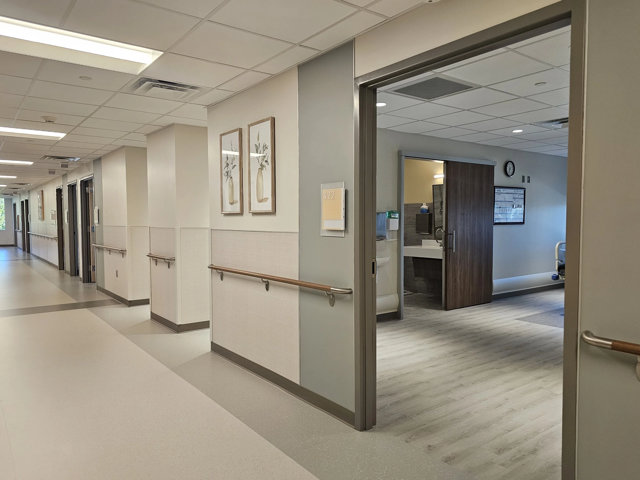 Siskin Hospital focuses exclusively on physical rehabilitation for individuals who have suffered from disabling injuries such as amputation, major multiple trauma, stroke, and spinal cord and brain trauma. The patient floor renovations include new patient care rooms, restrooms, staff spaces and common areas which the design team selected finishes, color schemes and materials that create an atmosphere promoting healing and peace for the patients, as well as a positive work environment for staff members. Environment has been proven to play a crucial role in the healing process, so providing a comfortable and accessible environment was a key factor of the overall design.